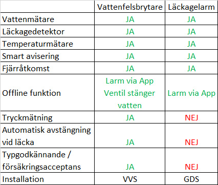 Tabellen hjälper dig att jämföra skillnaderna och hitta den lösning som passar bäst för ditt hem eller din fastighet.